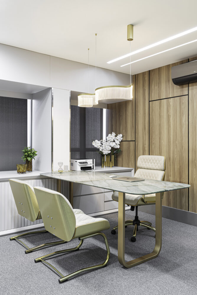 Cada detalhe foi pensado para unir estética e funcionalidade, oferecendo conforto, ergonomia e uma experiência de trabalho inspiradora para toda a equipe.