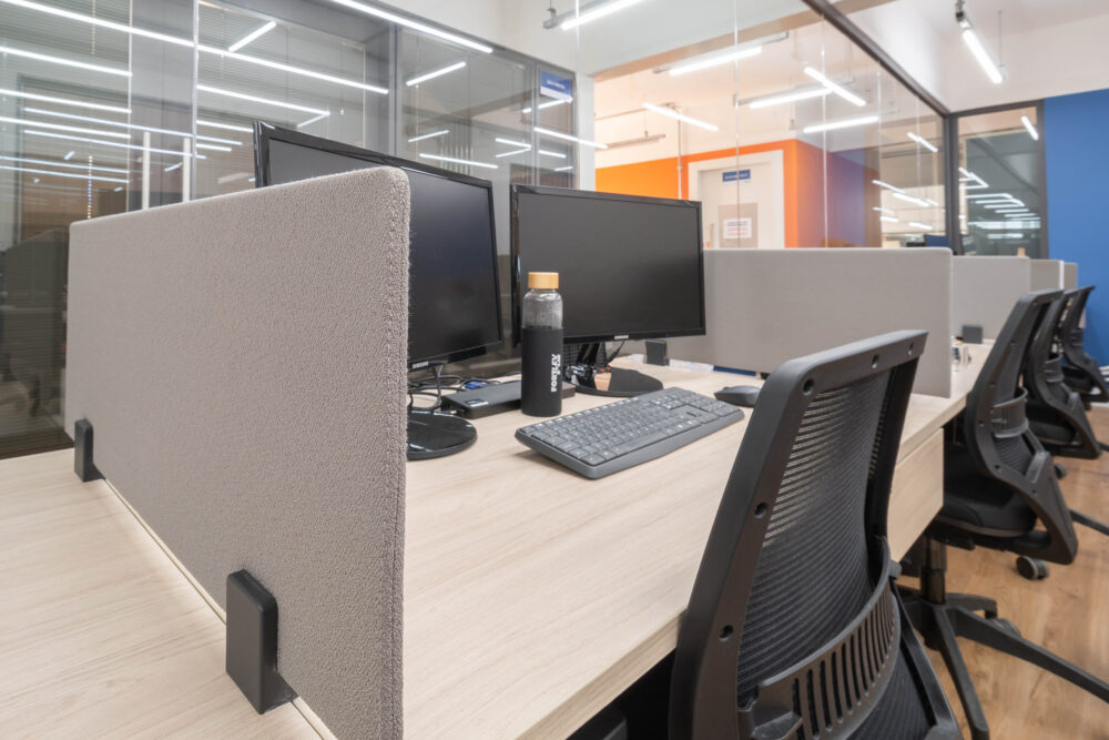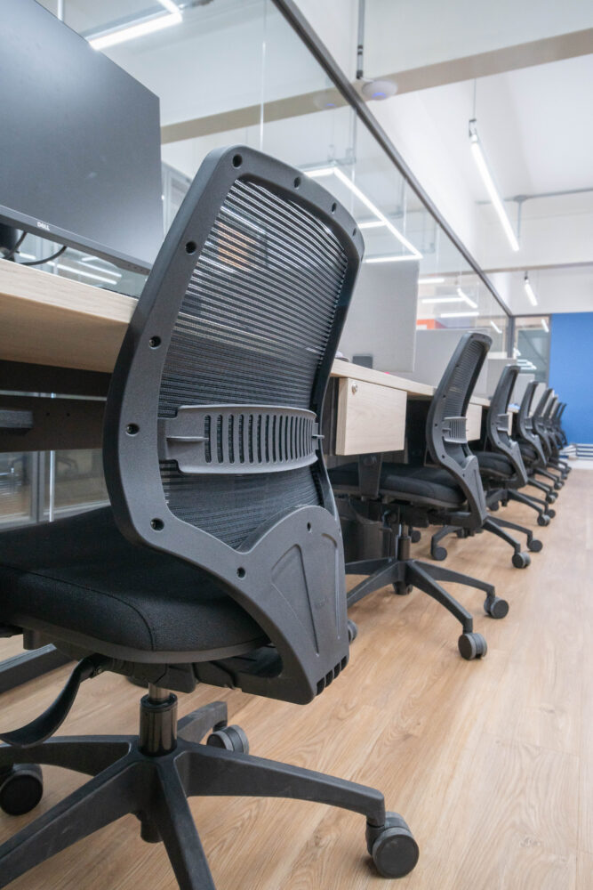 As estações de trabalho e mesas foram definidas para otimizar o dia a dia da equipe: