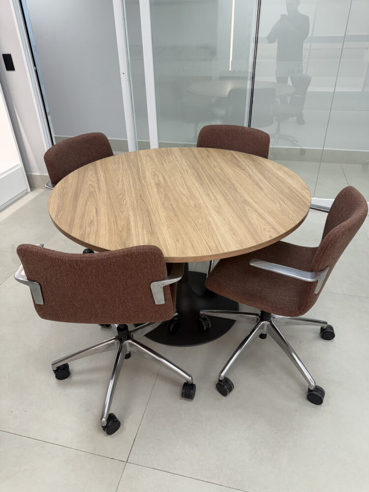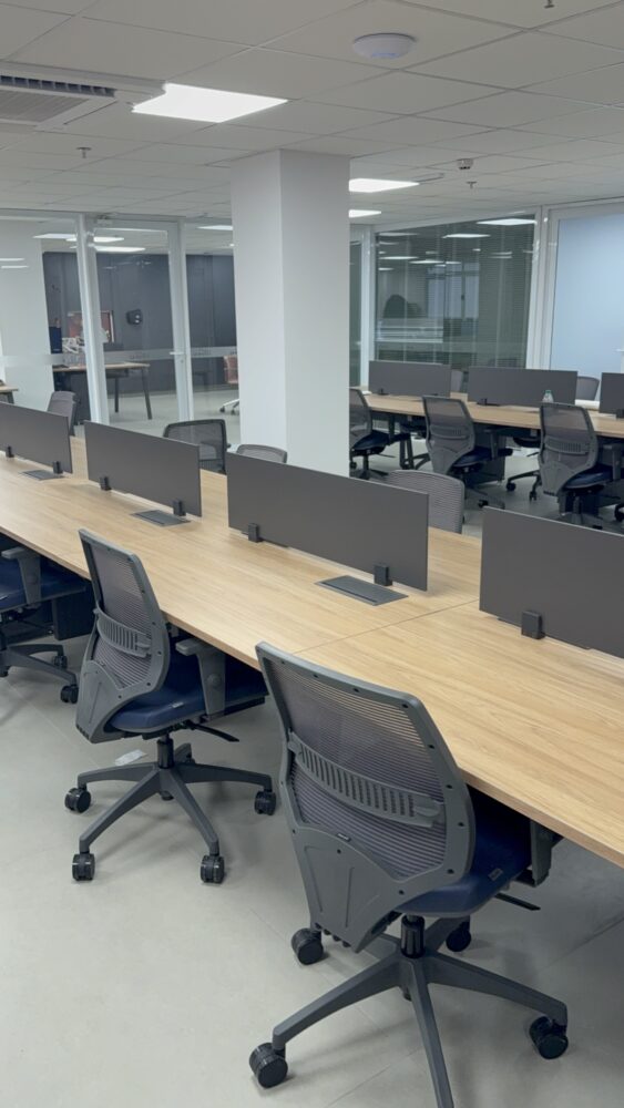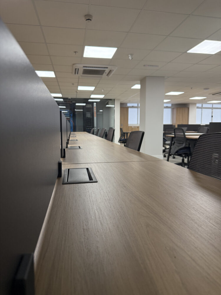 O projeto contemplou estações de trabalho operacionais, áreas administrativas, salas de reunião e espaços de apoio, todos com foco em circulação fluida, conforto postural e aproveitamento inteligente do layout, respeitando a dinâmica da equipe e a identidade visual da marca.