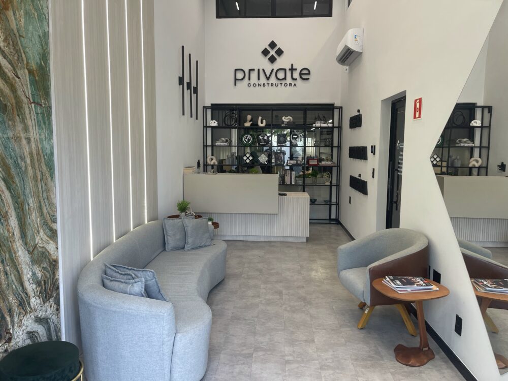 Além da funcionalidade, o projeto de mobiliário buscou valorizar a identidade visual e o conceito arquitetônico da empresa, criando ambientes corporativos elegantes e alinhados à proposta institucional da Private Construtora.