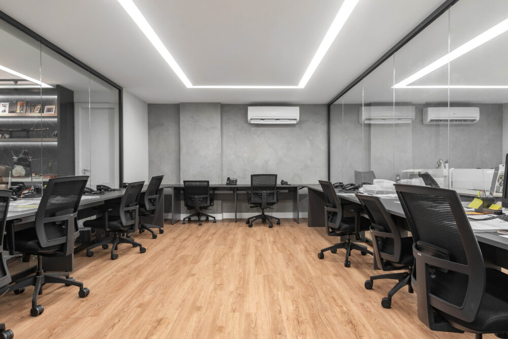 O resultado foi um espaço moderno, coerente com a identidade visual da Promel e pensado para promover bem-estar, produtividade e eficiência no dia a dia da equipe.