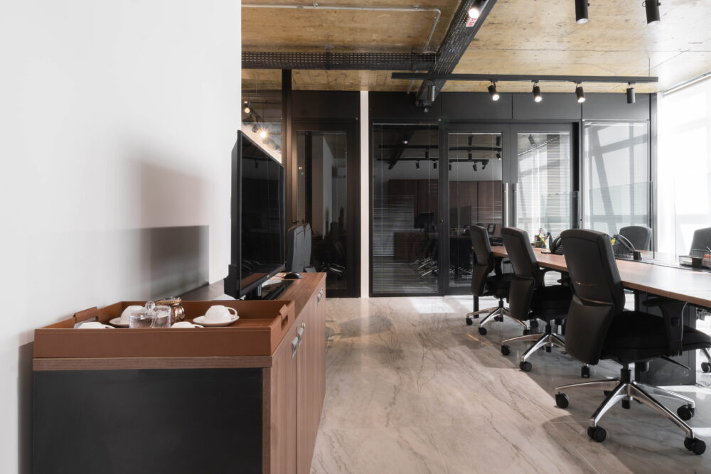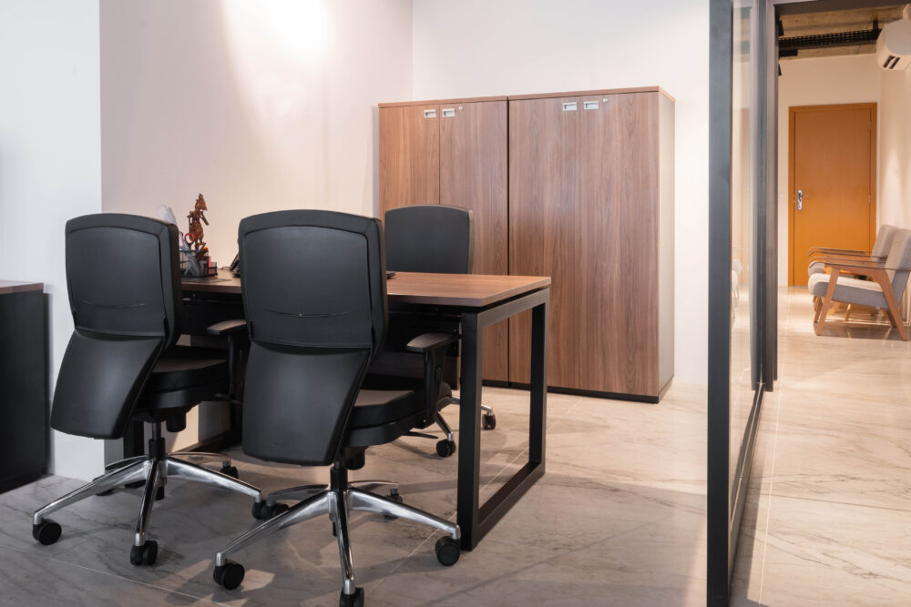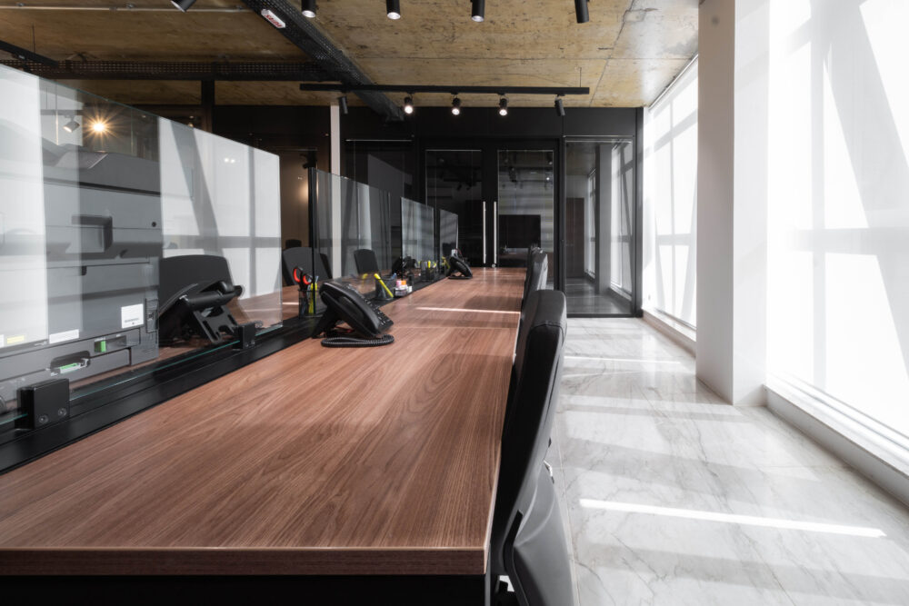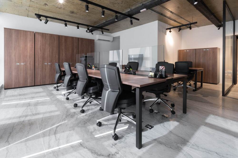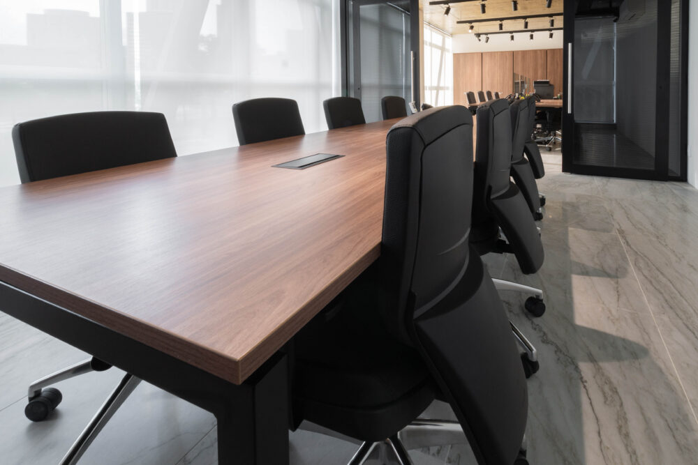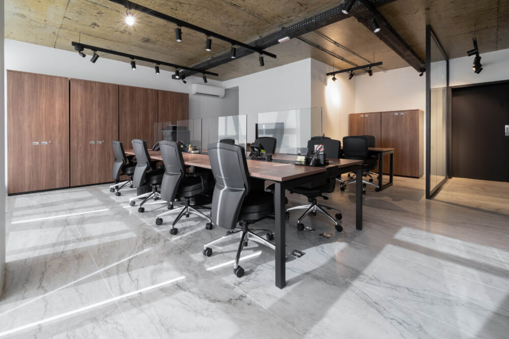 Na escolha dos mobiliários, a linha Work foi aplicada em todos os ambientes operacionais, com tons amadeirados nos tampos e estrutura preta, resultando em um visual contemporâneo e sofisticado. As cadeiras Energy foram utilizadas nas áreas operacionais, garantindo ergonomia e conforto ao time. Já para a diretoria, o destaque ficou por conta da imponente linha Boss, complementada pelas poltronas da linha Hospitality, agregando sofisticação aos espaços de reuniões e recepção.