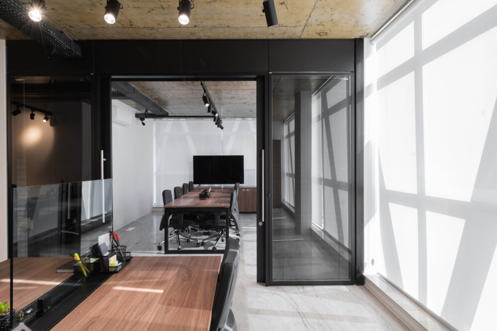 As divisórias da linha Linear, com vidro duplo e persianas embutidas, foram escolhidas para proporcionar privacidade e ao mesmo tempo permitir a entrada de luz natural e a conexão visual entre os setores. Para reforçar essa leveza no espaço, os divisores de vidro nas estações de trabalho garantem uma divisão sutil, ideal para equipes que precisam manter a comunicação constante.